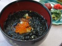 お茶碗であふれてしまうほどののりをふんだんに使用。三つ葉の風味とあられの香ばしさが、のりを引きたてます。スープにしてもよし、焼いたお餅でお雑煮にしてもよし。アイディア次第でいろいろな料理にお使い頂けます。 |